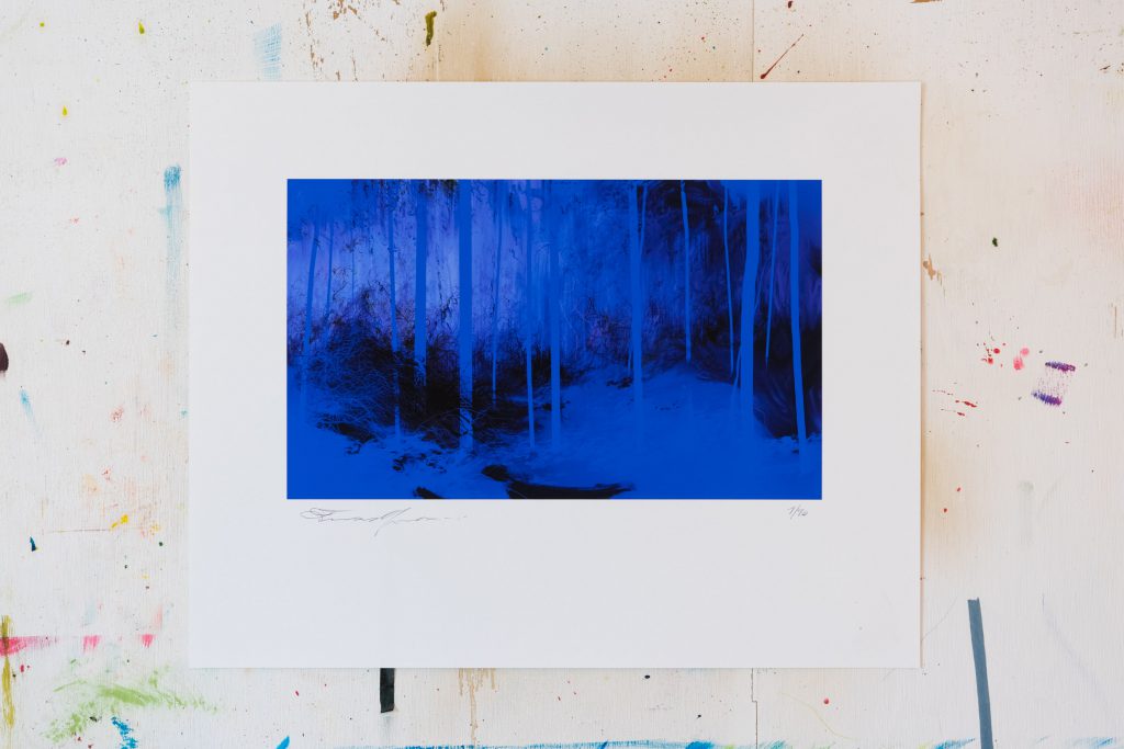 19 alberi blu, 2020, digital painting printed on Canson Infinity Fine Art paper, sheet dimension 33 x 41 cm, print dimension 18 x 30 cm