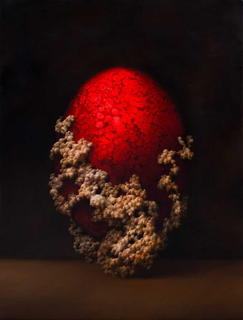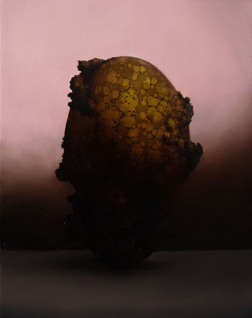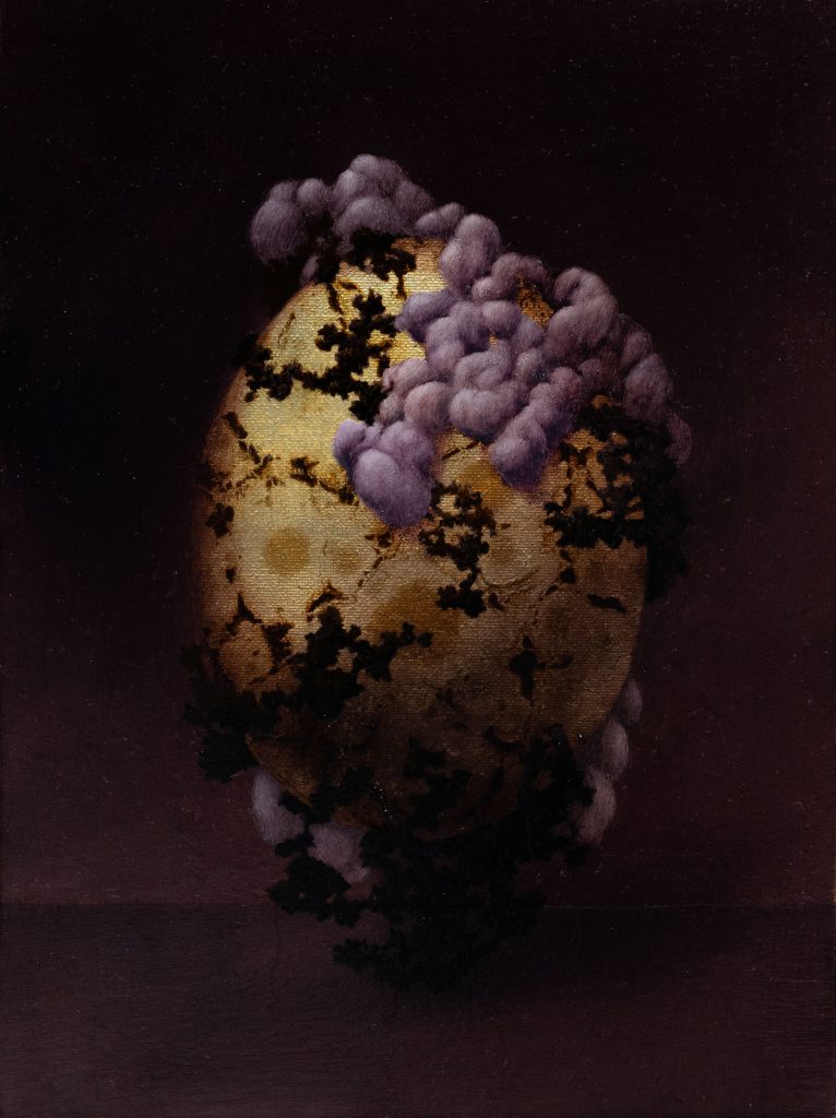 Dark egg, 2022, oil on epoxy resin on canvas, cm 30 x 24