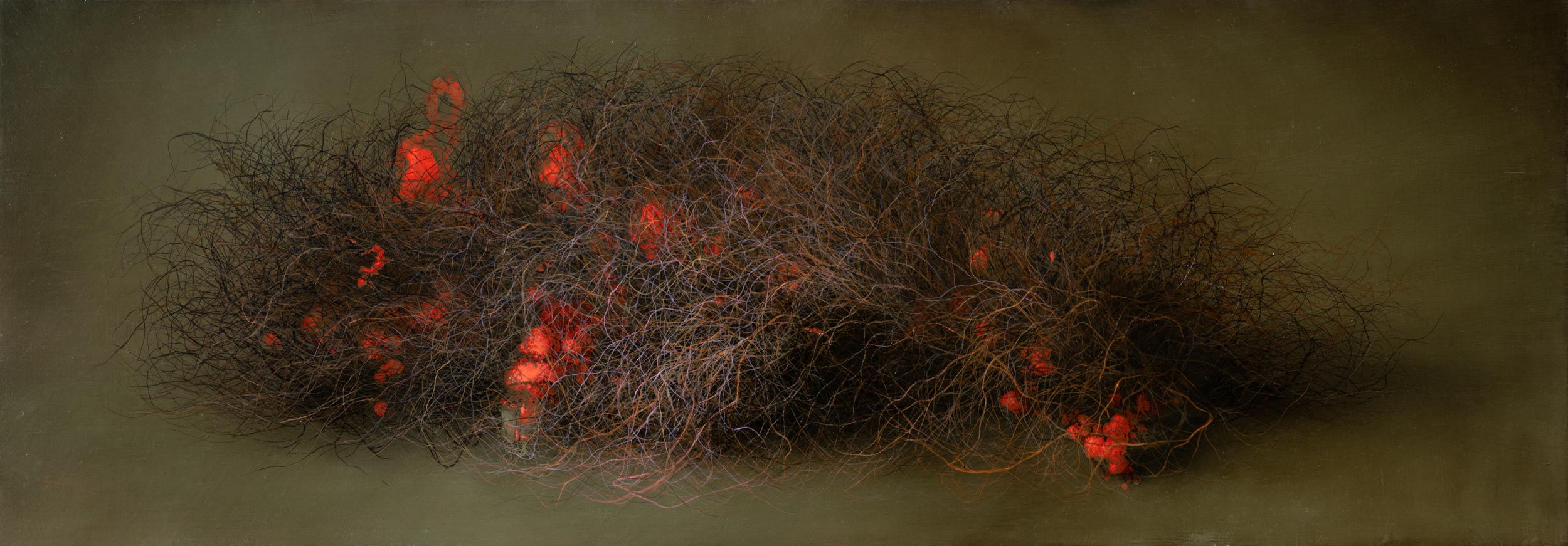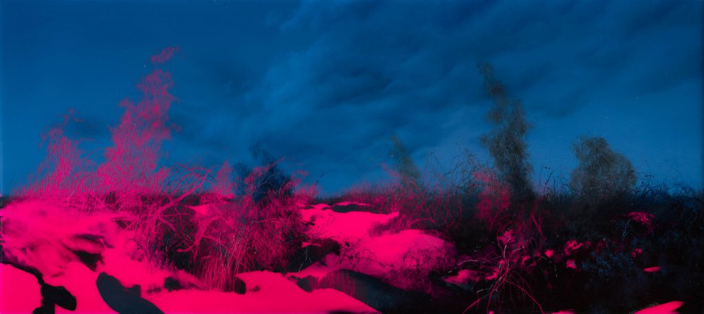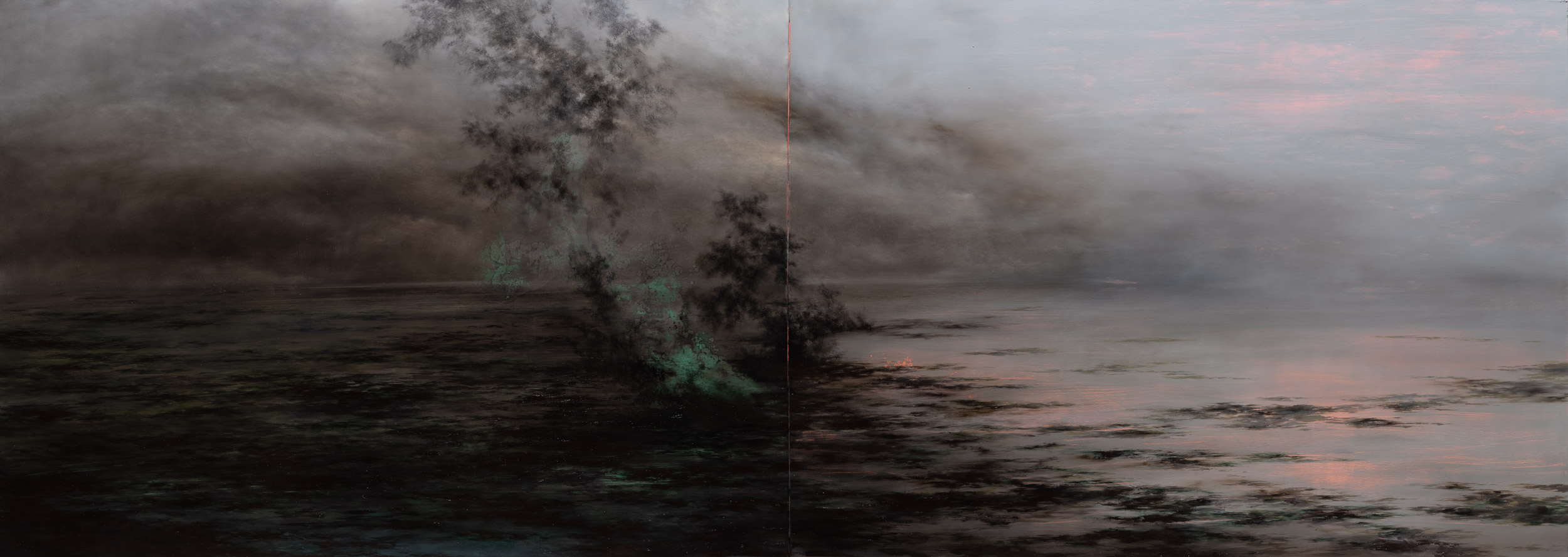 La fine, l'inizio e la scomparsa dell'orizzonte, 2021, oil on epoxy resin on canvas, cm 100 x 280