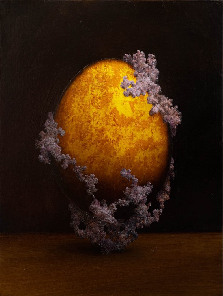 Fior d'uovo, 2022, oil on epoxy resin on canvas, cm 24 x 18 x 2