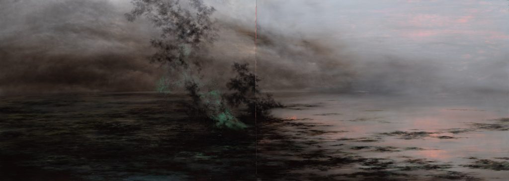 Bruma, oil on epoxy resin on linen, cm 100 x 140, 2019