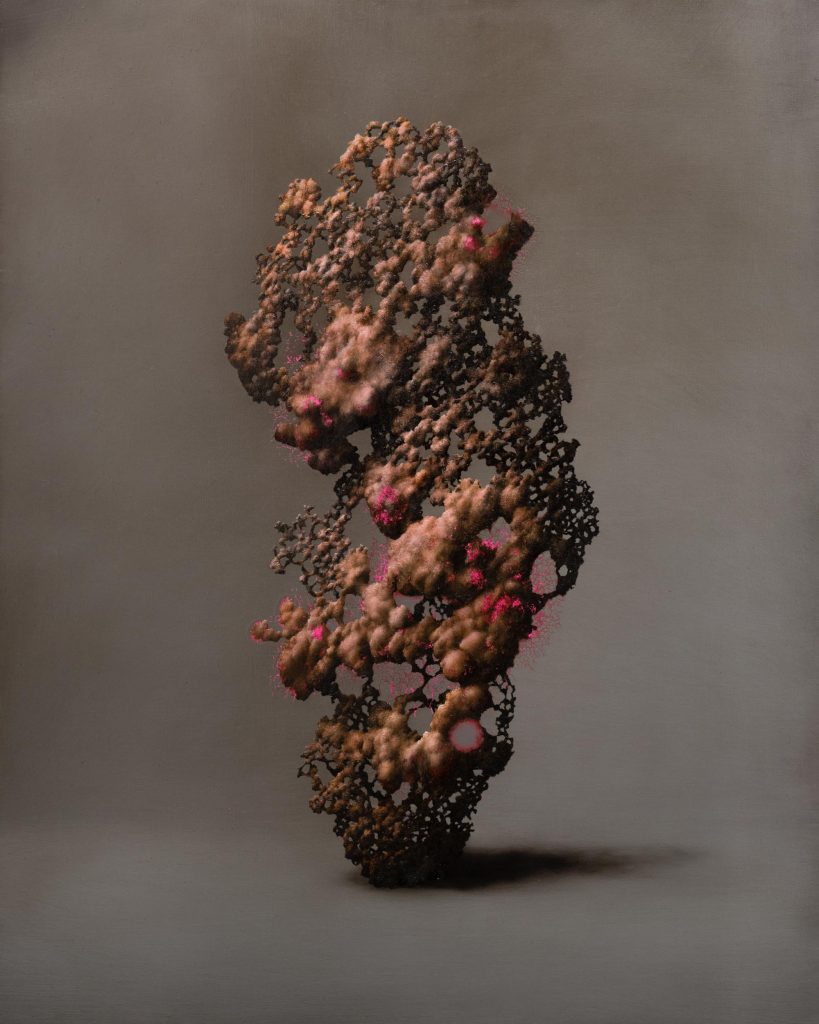 La metamorfosi della forma, 2022, oil on epoxy resin on canvas, cm 120 x 100