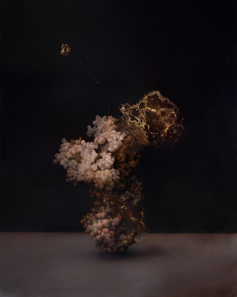 Fioritura, 2023, oil on epoxy resin and gold leaf on canvas, cm 24 x 18